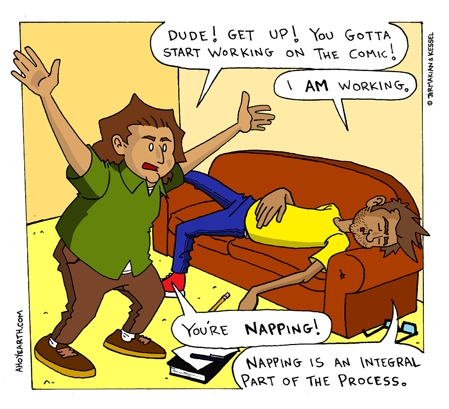 Every Monday, Wednesday and Friday, Ed Jermakian and Jared Kessel, two longtime friends right here on Long Island, post their latest creation on the Web and then repost it to Facebook, in the process, injecting their own brand of humor and take on the world into the social media sphere. Ahoy Earth! is a brilliantly drawn, thought-provoking, oftentimes hilarious Webcomic, about two aliens named Heady and Faisal “living on earth killing time like the rest of us,” reads its profile page. The extraterrestrials are not always the protagonists (Ed and Jared often draw themselves into the comic, as well as known superheroes, among many other characters), and topics range from the mundane to the most pressing (its Aug. 28 strip “Deja Boom” deals with the present Syrian crisis). Worth checking out, if not for the laughs, for the art: www.ahoyearth.com.