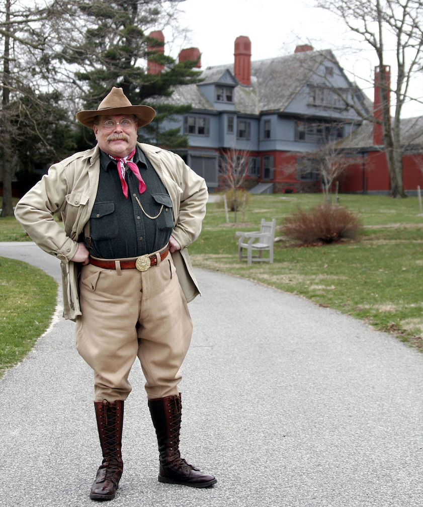 Foote had kept his mustache when he got out of the Navy, but only after he started wearing glasses did people remark that he resembled the 26th president. He went to a costume party as Roosevelt and then was invited to be part of a Memorial Day parade in Sea Cliff, where he grew up. Next came requests for repeat performances, which required further research.