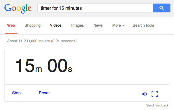 If you have access to Google, you have a timer. Type “timer for fifteen minutes” in the search bar and, lo and behold, Google will set off a beeping noise that sounds like an oven timer after the allotted time expires. The limit seems to be the 24-hour mark, but if that’s something you’ve decided you really need, set it for 23:59 and voila!