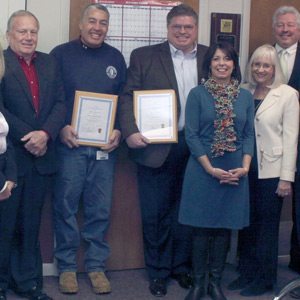 The Port Washington Police District honored the Town of North Hempstead Highway Department for its hard work in keeping the town’s 300 miles of roadways in good repair and upkeep, especially during the recent snowstorms the area has seen.
