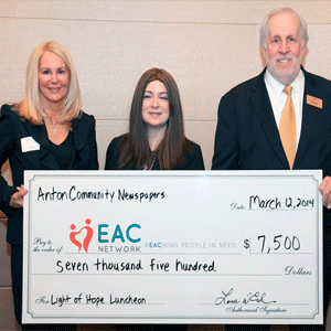 EAC Network is pleased to announce that it has received a $7,500 donation from Angela S. Anton, publisher of Anton Community Newspapers, in support of the agency’s Light.