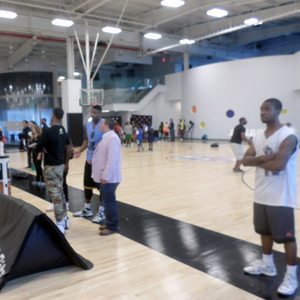 The event drew dozens of professional basketball prospects and scouts from nine NBA teams, including the New York Knicks and the Brooklyn Nets. At the same time, the courts were full of youngsters playing in organized games from the grade school to high school age levels.