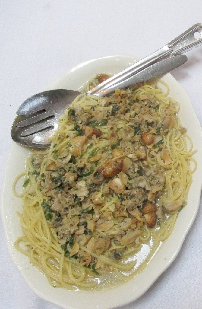 Additionally we get shrimp oreganato (a perfect sauce to sop up with bread), linguini filetto and penne with broccoli for our vegetarian. We’re not crazy about the bread but we slather it with oil and crushed garlic and put it in the broiled for garlic bread. Everyone is happy. We get lots of good food in generous portions. And the leftovers the next day are terrific.