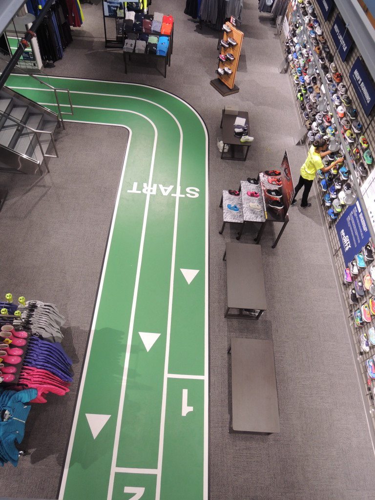 KJoy radio will be live in store from 11 a.m. and more. But the best is the indoor track for runners to check out how their running shoes fit.