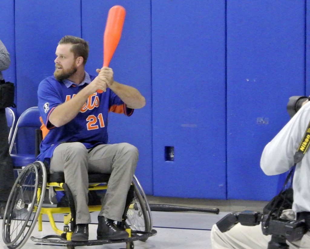The Met players, for their part, participated in the same wheel chairs that many of the students use. They taught the children how much fun exercise is, especially when it involves The National Pastime.