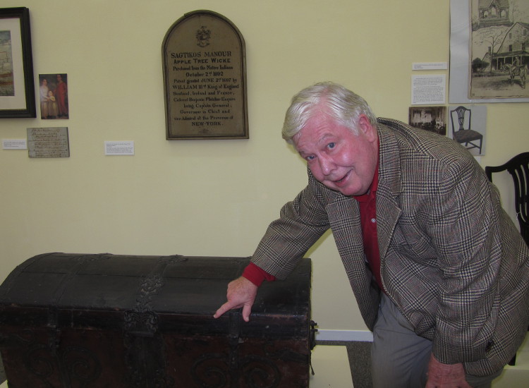 Known to viewers as a regular on the PBS series, “The Antiques Roadshow,” Failey was the former senior vice president and senior director of American furniture and decorative arts at Christie’s auction house for decades. At the museum recently, he pointed out a trunk on display, open and overflowing with old newspapers dating from 1921 to 1936, that had been found in the attic of the manor just this past year. Inside, it was a collection of 18th century silverware created by LI’s master silversmith, Elias Pelletreau. As Failey wrote in an accompanying note on the display case: “Judging from storage tags and newly discovered inventory lists, the chest was used to transport silver from the family’s winter home in New York City to East Hampton and Sagtikos.”