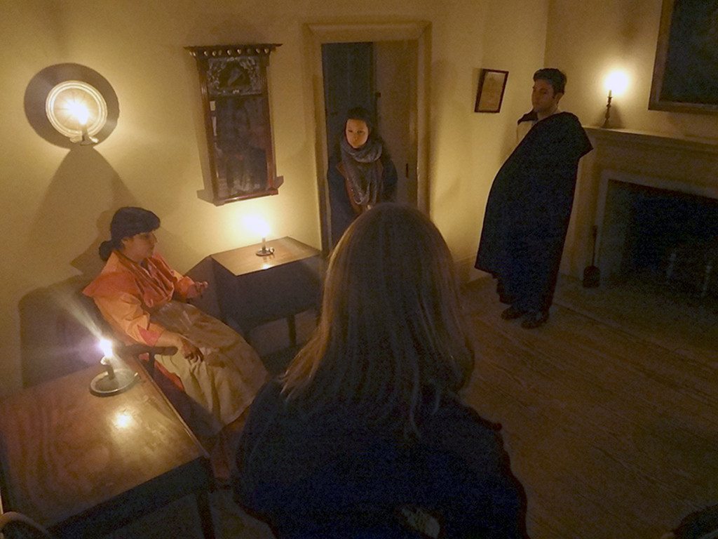 Ryan Kellas of Syosset normally works at the Restoration as a potter, molding bowls, plates, jugs, and other such items in the manner in which they were originally created long ago. However, he also is the young man behind the inaugural Village Haunted Tails and Trails event, an atmospheric oil lamp-lit historical tour of the Restoration running throughout evenings in October, where history’s dark past comes to life while leading up to the creepiest time of the year- Halloween itself.