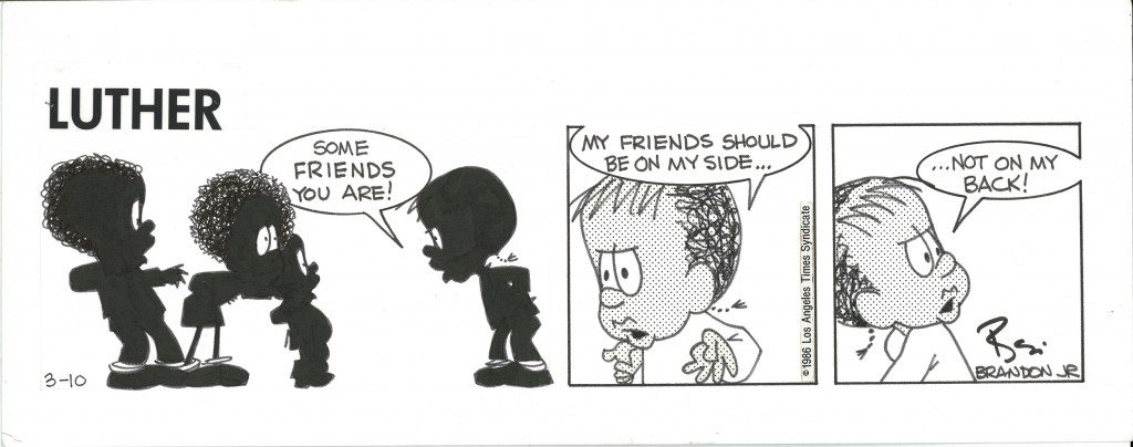 Determined to have his character and column “tell it like it is,” Brandon Jr. spent 16 years chronicling the times and events of the decades as seen through the eyes of his character “Luther”, many of which were during the height of the civil rights movement.