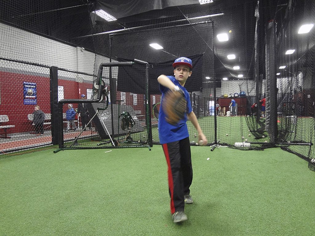 Sixth-grader Matthew Mancuso of Syosset was in a cage with his dad, working on his catching skills. He intends to try out for his school baseball team come next year and said that Frozen Ropes has helped him come a long away to preparing for that day.