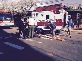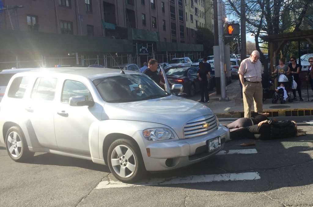 The blinding glare of the late afternoon sun may have been a factor in this accident last Wednesday just after 5 PM at the intersection of Grace Avenue and Bond Street. Two pedestrians were involved as the car struck one person who was then knocked into the other person in the crosswalk.