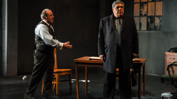 Set in an abandoned warehouse in New Jersey bathed in deep grays and dark shadows, iconic figures recognizable to anyone well-versed in mob filmography command the stage.