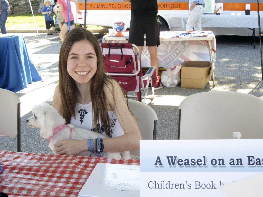 Port Washington’s Taylor Sinett, a 15-year old ninth grader at Schreiber High School, signed copies of her book, Weasel on an Easel, at HarborFest on Sunday, June 7. All the proceeds from sales of the book will go to the Chrohn’s and Colitis Foundation of America (CCFA). The book is dedicated to Sinett’s cousin, who suffers from ulcerative colitis, a chronic disease of the colon. “My cousin Casey has colitis,” said Sinett. “I saw her suffering in the hospital, but she always stays positive
