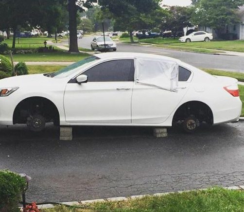Lindsey Reiersen was greeted with a nasty surprise on July 30, when she walked out of her driveway and saw the back windows of her new car smashed and all four tires stolen.