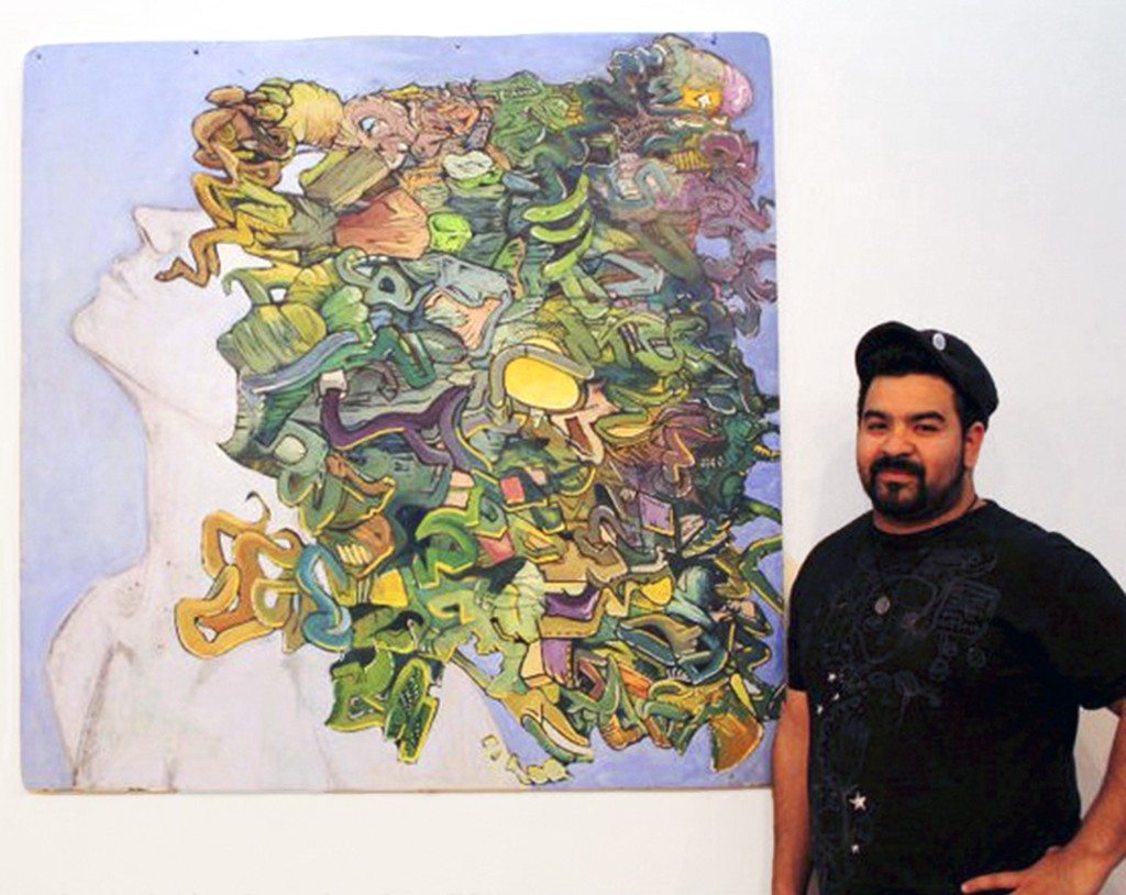 Marvin “Kiwi” Arevalo with his piece “Medusa,” 2010, acrylic on foam board