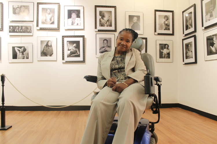 Gaines wheels her way through the museum across the street and gazes at the crowd. The room is lined with enlarged U.S. Postal Service stamps of prominent blacks. There’s one of Martin Luther King Jr., Malcolm X, Ella Fitzgerald and Rosa Parks. Judging by the celebrity-like reaction she inspires from friends and admirers, Gaines could one day bless that very same wall.