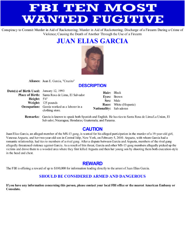 Garcia was on the lam for four years before surrendering to law enforcement authorities in Nicaragua in March 2014, after spending one day on the FBI’s Ten Most Wanted list. The feds had offered a $100,000 reward for information leading to Garcia’s arrest.