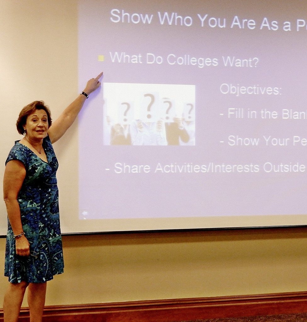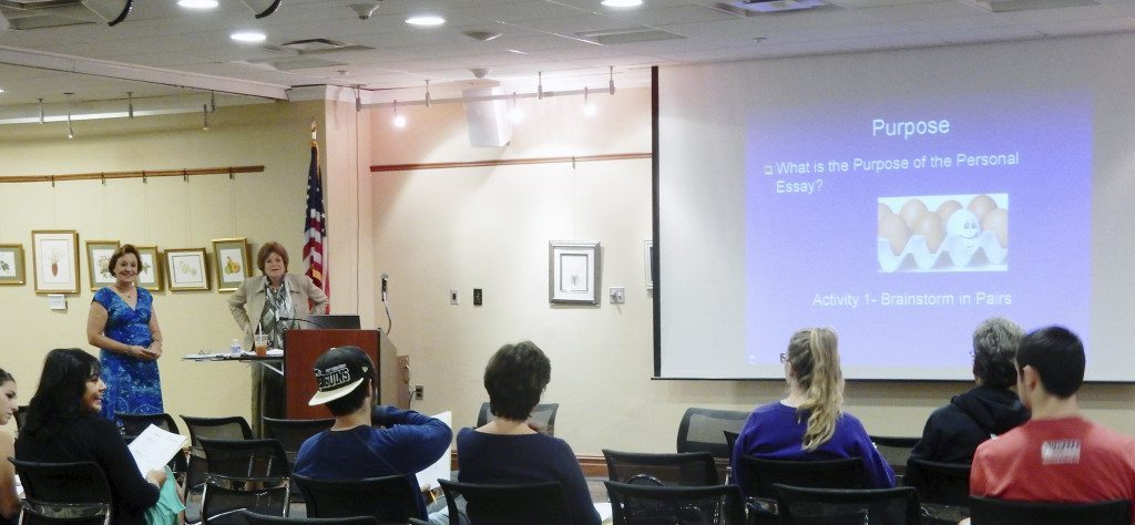 Nancy Brennan, MBA, MA, a college application coach and editor, held an interactive College Essay Writing Workshop at the Manhasset library recently before an enthusiastic audience of parents and students.