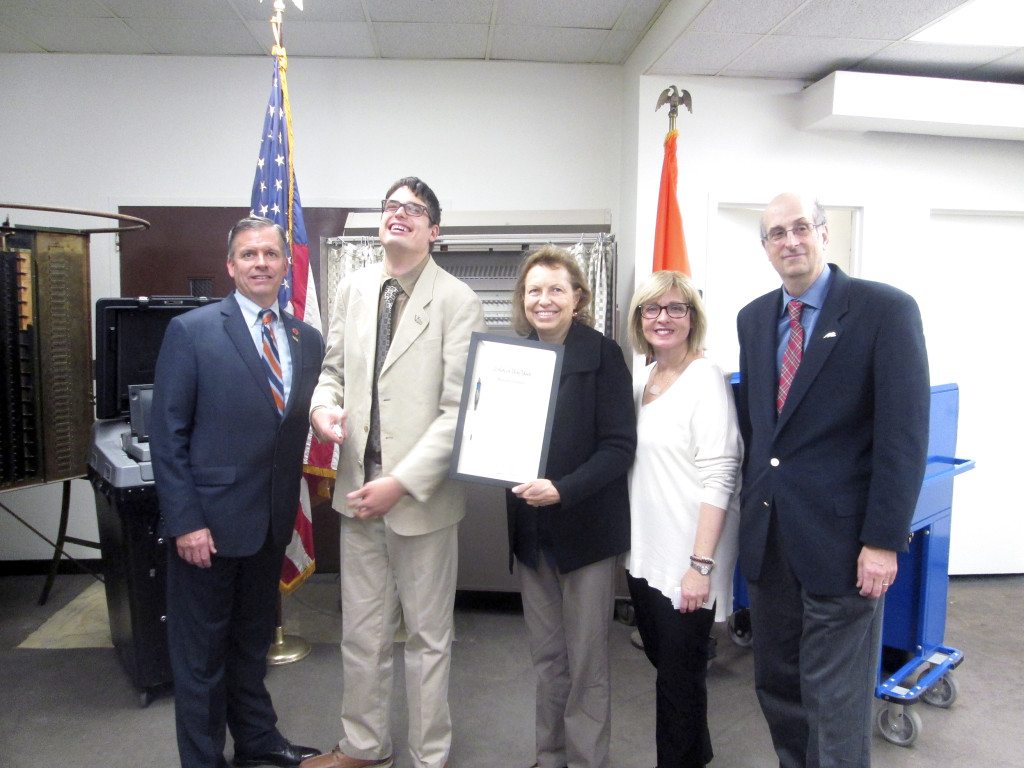 Port Washington resident Kevin Greenstein was honored for his advocacy for the continued use of lever voting machines for school budget votes, village elections and special district elections. He was presented with a copy of the Lever Voting Machine Law signed by Governor Andrew Cuomo. The presentation took place at the Nassau County Board of Elections. His parents, Star Anthony and Larry Greenstein, were in attendance.