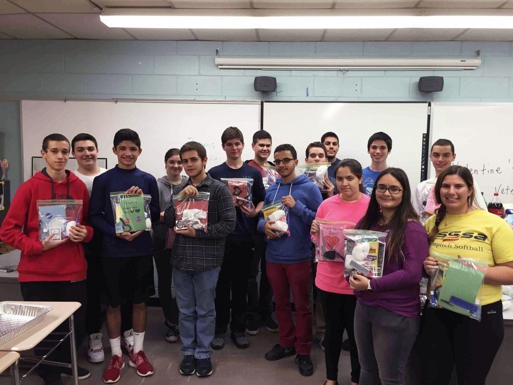 Members of the Carle Place High School SPARC/Interact Club recently assembled entertainment gift packages, or Valentines for Veterans.