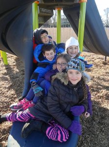 The Hebrew Academy’s fifth graders won out in the Gratitude contest, and while their classmates retreated back indoors, they were allowed first crack at the exciting new playground after the ceremonial ribbon cutting performed by Wexelman’s grandchildren, Ari and Skylar.
