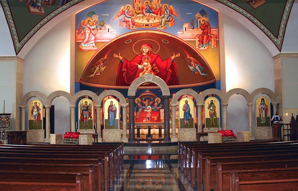A significant feature was the design of the 40-foot dome above the sanctuary with structural support transferred to the perimeter to provide a column-free space. This was completed with burnished gold leaf and traditional iconography.