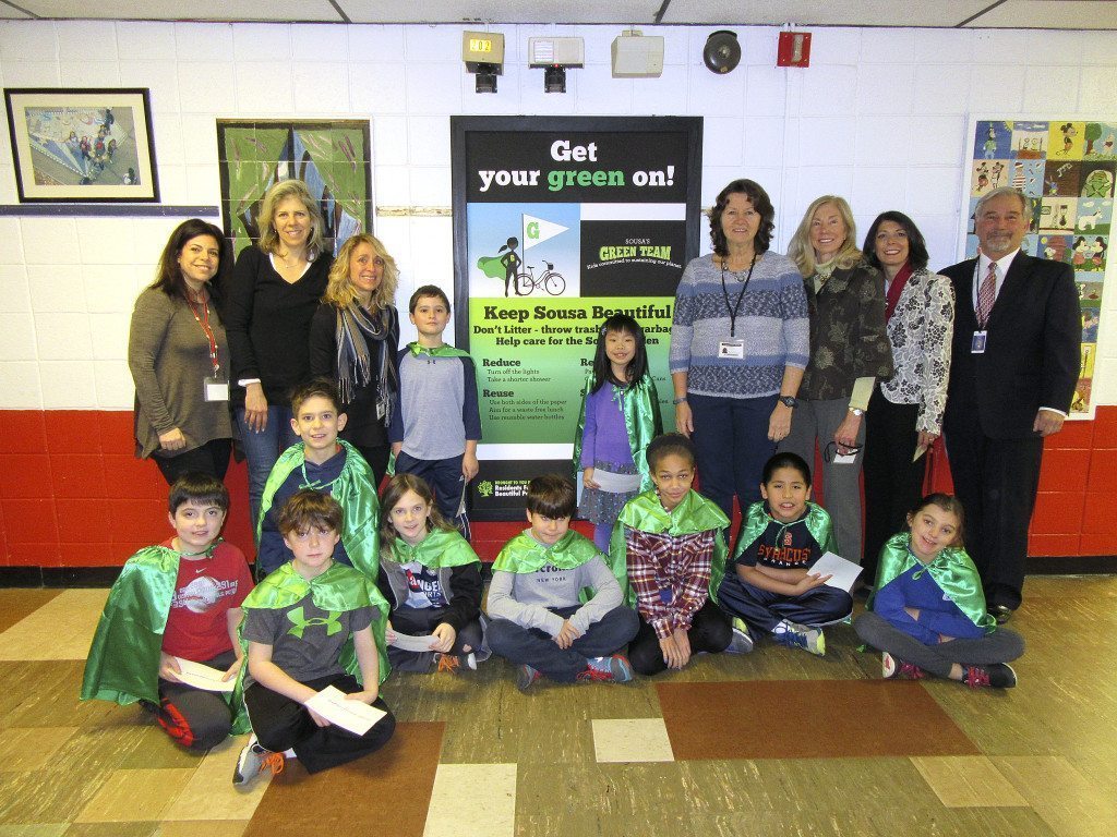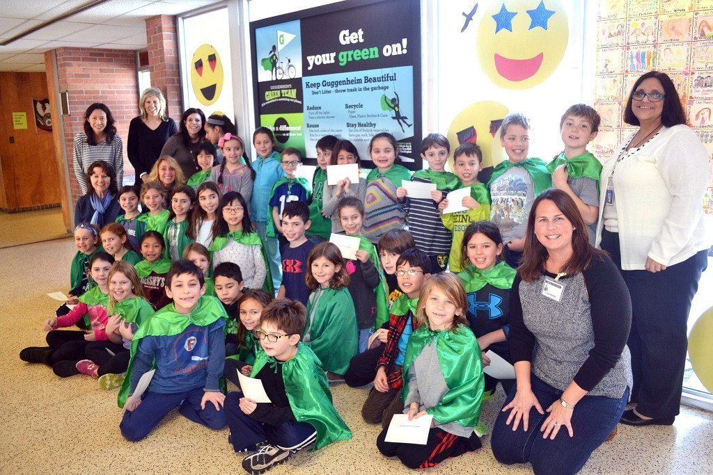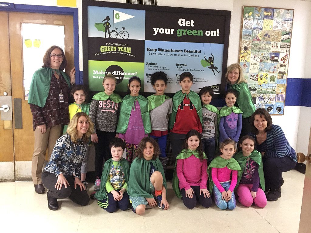 As the world wrestles with how to slow down global warming, Residents For a More Beautiful Port Washington put their elementary school Green Team leaders and the Schreiber Tree Hugger Environmental Club on the case. Together, through a grant from The Jaggar Foundation, the “Get Your Green On” signage campaign was developed and unveiled in all five elementary schools last week.