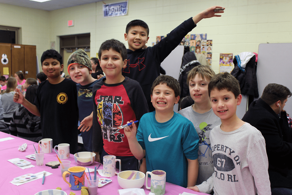 Claytime of Huntington supplied the mugs, bowls and paints—with the excess funds going toward fifth-grade graduation related events.