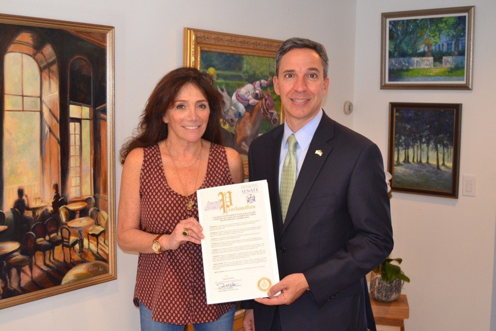Roslyn Village Gallery, at 21 Main St., was welcomed to Roslyn last week through a gala grand opening that included a visit from Sen. Jack Martins (R—Old Westbury). The gallery allows residents to view and purchase works created by the owner, Marsha Tarlow and other local artists.