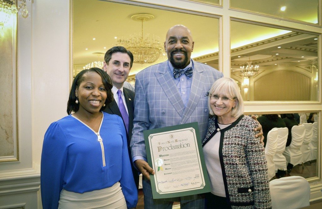 Town of North Hempstead Supervisor Judi Bosworth, Councilmember Viviana Russell and Town Clerk Wayne Wink attended a ceremony on March 5 at Verdi’s in Westbury to celebrate Bishop Lionel Harvey’s 17th anniversary as a pastor for the First Baptist Cathedral in Westbury. Bosworth presented Harvey with a proclamation in honor of his anniversary.