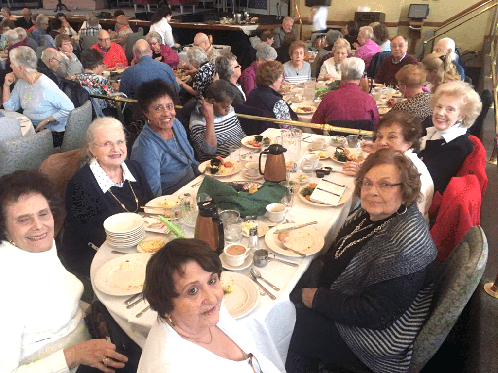 On Wednesday, March 30, 30 seniors from the Port Washington Senior Citizens Center went to Hunterdon Playhouse in Hampton, NJ. The day started with a breakfast of muffins and juice for the bus ride, generously provided by the Dime Savings Bank (1000 Port Washington Blvd.), followed by a bus ride where they watched movies and played bingo. At Hunterdon, they enjoyed a delicious lunch with a terrific dessert buffet, and then a hilarious show called Spreading it Around. Everyone who attended had a wonderful time.