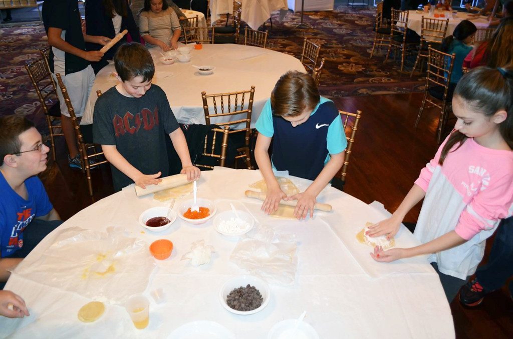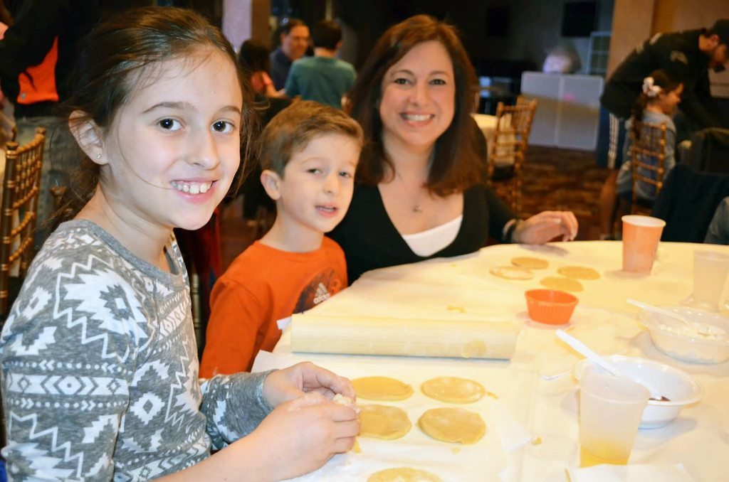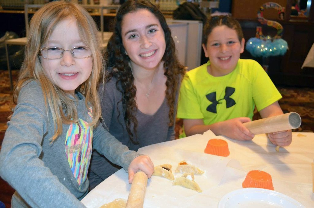 Temple Or Elohim’s Familyhood committee hosted a “make and bake” event for families recently, with more than 100 congregants (adults and children) rolling out special pastry dough—a recipe for hamantashen that has been in one of the congregant’s family for generations. Each person had fun cutting the flattened dough into small circles, filling them with various jellies, chocolate and marshmallows and folding them into triangular shapes. As they anxiously waited for the pastries to be done baking, the children decorated their own bakery boxes, which was used to bring home these Jewish goodies. At the end of this baking event, the temple collectively baked more than 300 cookies.