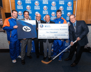 The New York Islanders raised $10,000, which was donated to the Alzheimer’s Foundation of America (AFA). AFA teamed up with the Islanders to raise awareness of Alzheimer’s disease. The AFA’s board chairman is Sand Point resident Bert Brodsky.