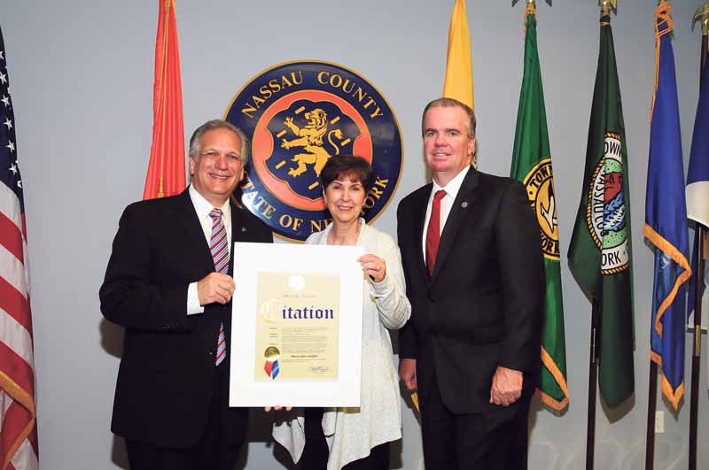Westbury resident Mary Jane Griffin was recently awarded a citation from Nassau County Executive Ed Mangano and Acting Police Commissioner Thomas Krumpter, for her 50-year career as a civilian employee of the Nassau County Police Department.