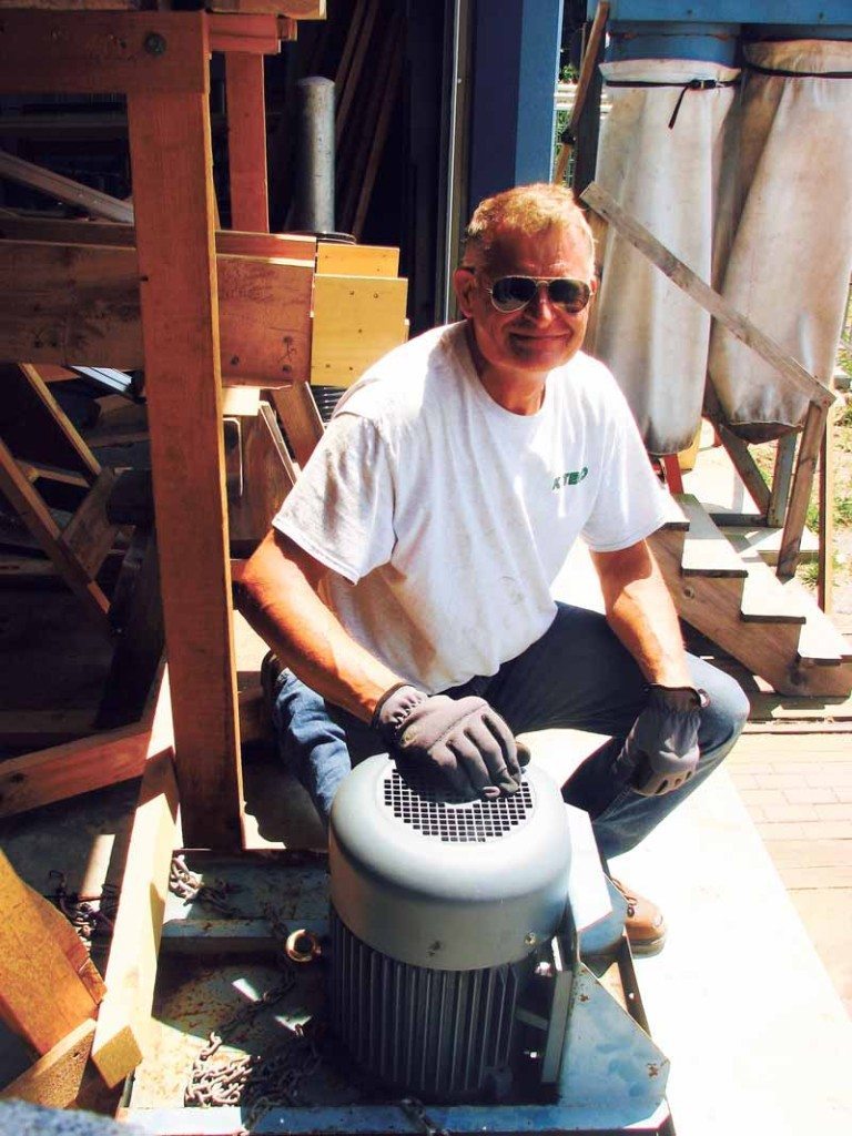 Gagliano keeps coming back to repair the motor that runs the dust collector vacuum system. The vacuum system was one of the first things installed in the boatyard when the wooden boat building workshop was designed. It started as an empty steel building.