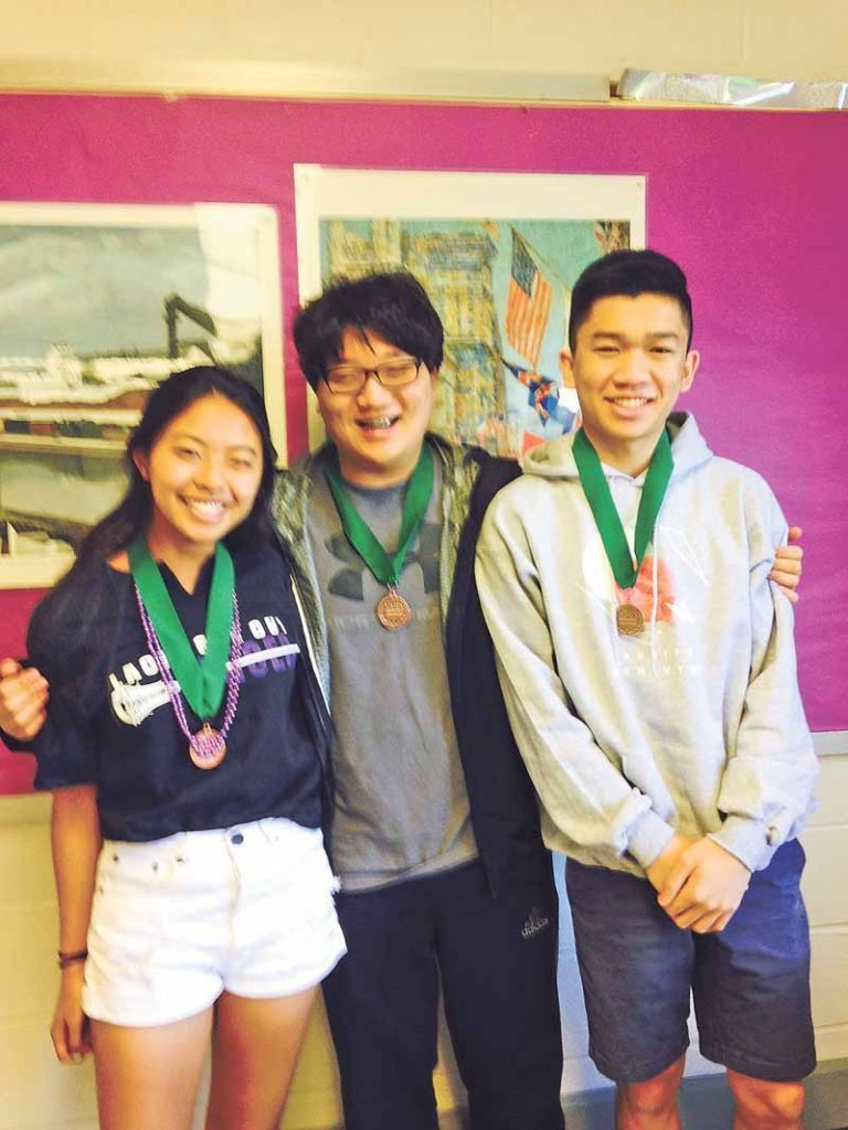 South High students (from left) Josephine Zheng, Jin Mo Koo and Ernest Fok took Third Place in the Group Website category of the New York State National History Day Competition. The three are in Francis Tria’s Advanced Placement US History class. This year’s competition theme was Exploration, Encounter and Exchange. The students created a website called William F. Buckley, Jr. and the National Review, which can be viewed at http://87297897.nhd.weebly.com. This is the second consecutive year that South High students have participated in the History Day Competition. As a result of this interest, a National History Day Competition Club was formed at the school, which helps advise competition participants. In addition to Tria, Librarian Judith McClellan is a club advisor.