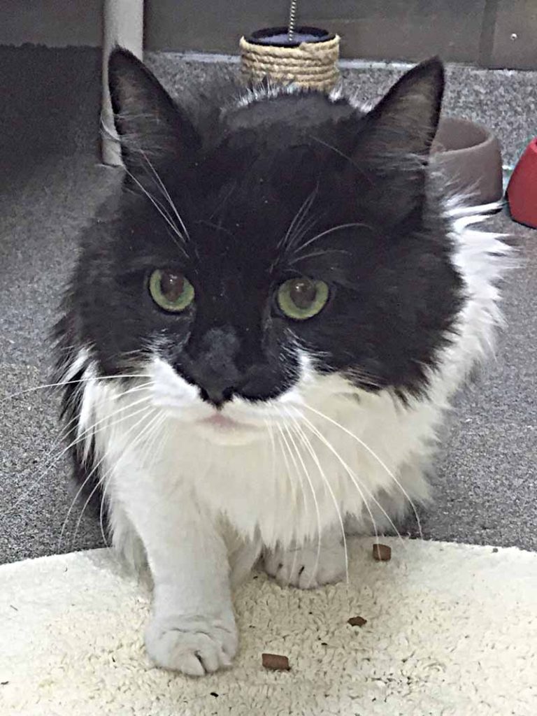 Samantha #160308—Is a 6-year-old domestic long hair, black and white female. Samantha is super sweet and soft as a bunch of feathers. Samantha is up to date on all her vaccines, spayed and micro chipped. Now all she needs is a new family. If you think Samantha might be a great addition to your home, come pay a visit to the shelter.