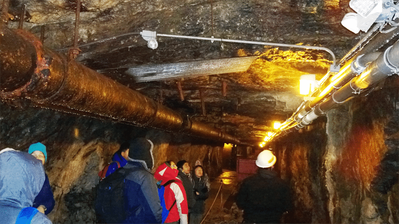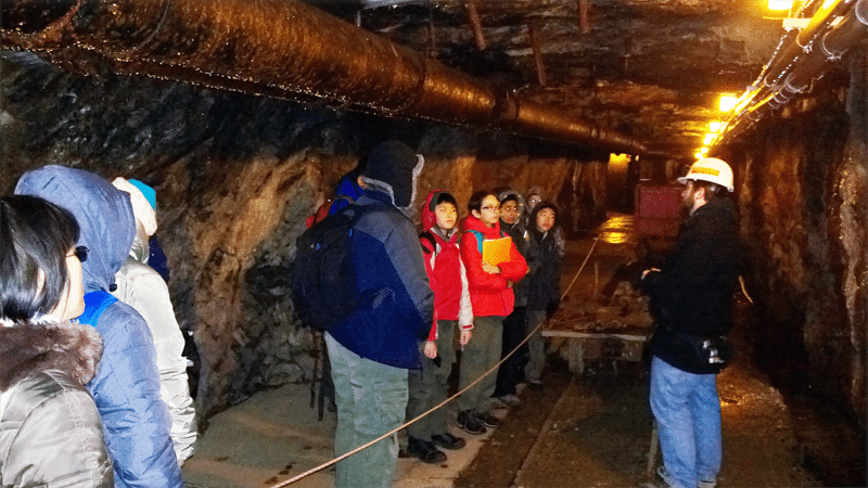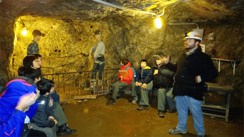 Next, the Scouts went on was a walking tour through the 1,300-foot underground Sterling Hill mine. Various pieces of actual equipment were displayed throughout the passage. Visitors saw the lamp room, the shaft station, mine galleries dating back to the 1830s, the glow-in-the-dark fluorescent Rainbow Tunnel and a sight-and-sound blasting demonstration.