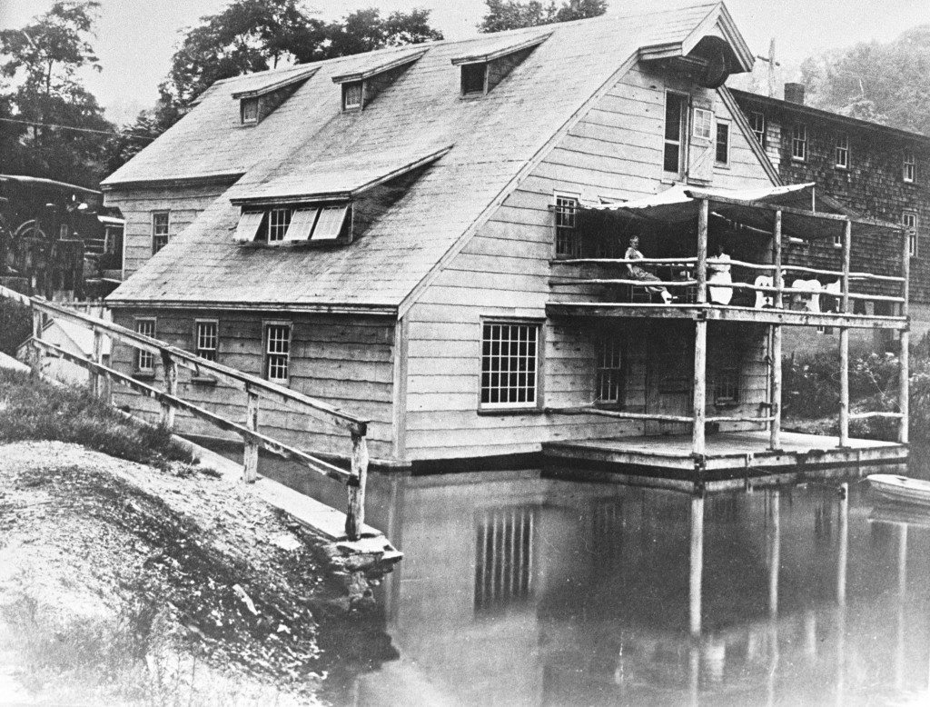 The Grist Mill was originally constructed by in the early 18th century by Roslyn resident John Robeson, who later sold it to Jeremiah Williams. Historians believe that Williams built the current mill sometime between 1715 and 1741. In time, the mill became the property of Hendrick Onderdonk, a man famous in Roslyn history for operating a spy ring during the Revolutionary War. After the war ended, George Washington, during his 1790 triumphant tour of Long Island, visited the Onderdonk house to thank Hendrick for his services.