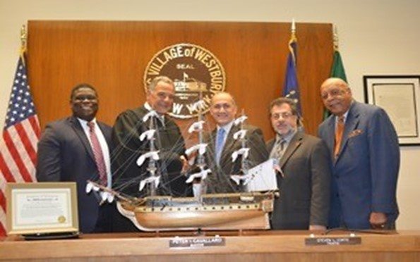 Westbury Village Justice Thomas F. Liotti, will present a replica of the U.S.S. Constitution, “Old Ironsides” to Westbury Mayor Peter I. Cavallaro and its trustees on Sept. 20, at 7 p.m., commemorating the Westbury Village Justice Court’s eighth annual Constitution Day celebration and program where the community is invited to hear distinguished speakers such as Westbury resident Dean Michael Simons of the St. John’s University Law School.