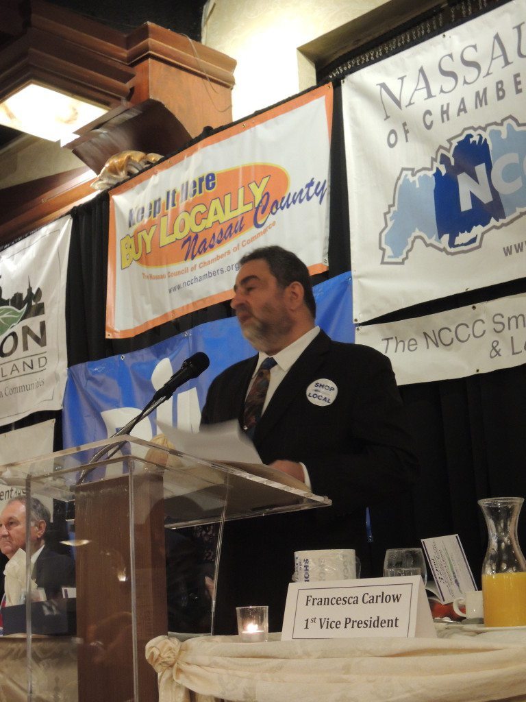 Numerous colleagues from around Long Island gathered at the Crest Hallow Country Club in Woodbury to network and speak with local officials to promote small business. In attendance were members of the Town of North Hempstead, Senator Jack Martins and other elected officials and political hopefuls in addition to numerous chamber members. Port’s Chamber President Mitch Schwartz and Town Of North Hempstead’s BID Roy J. Smitheimer were on the dais. Schwartz currently is 2016 Nassau Council of Chamber of Commerce Member-at-Large but elected treasurer in 2017. Smithheimer was a past president of the organization.