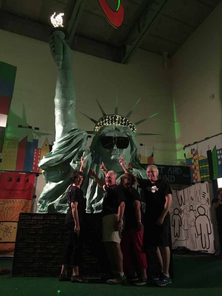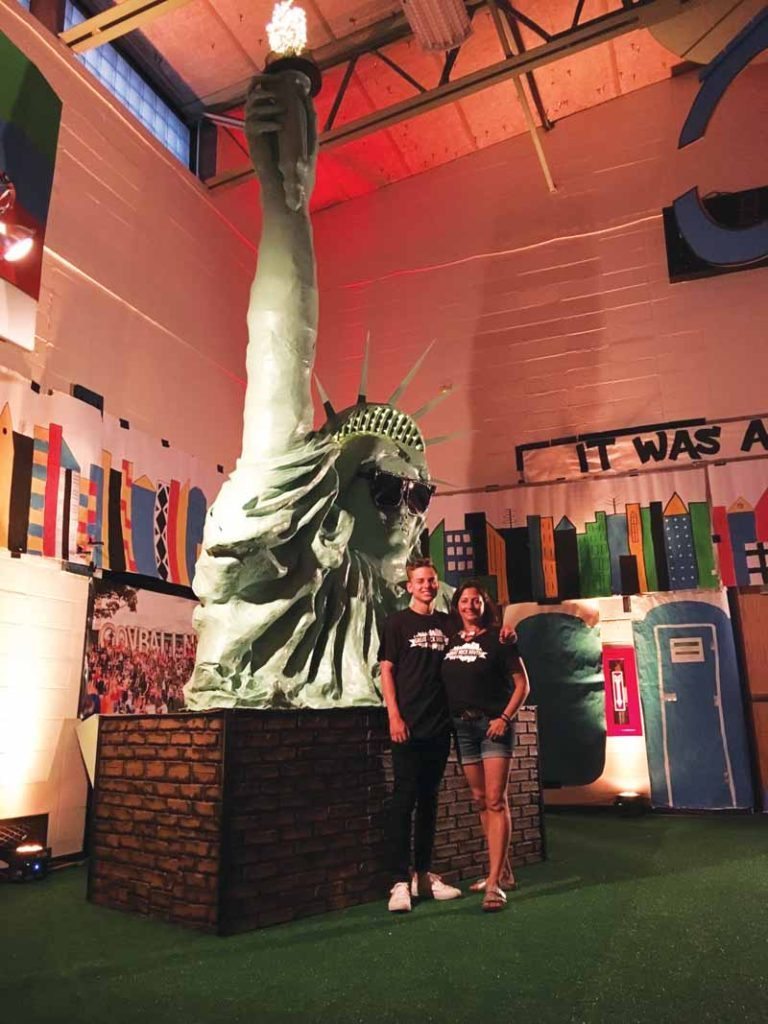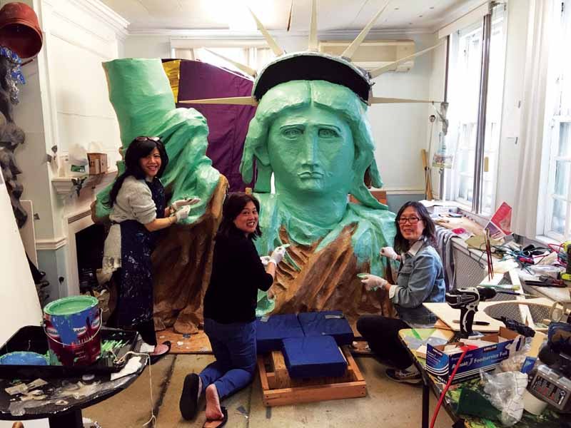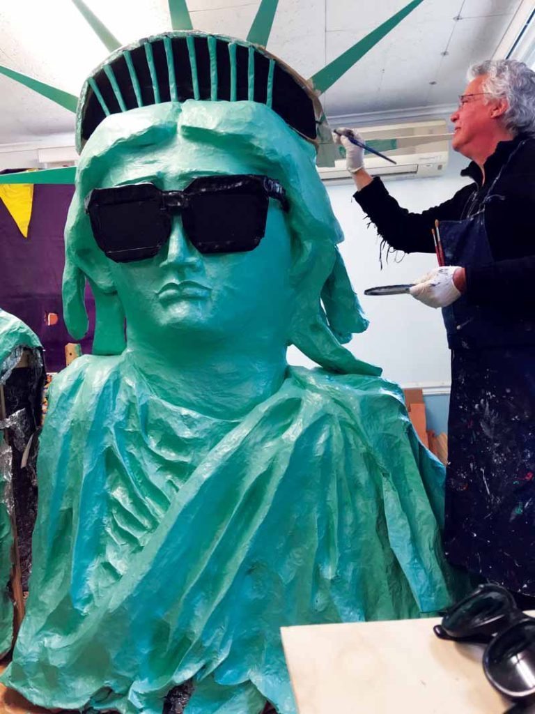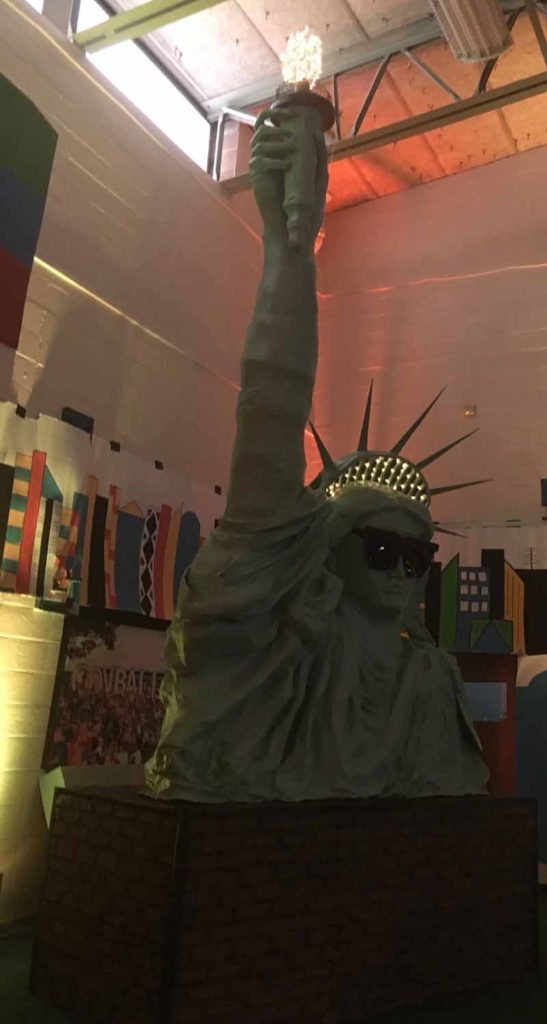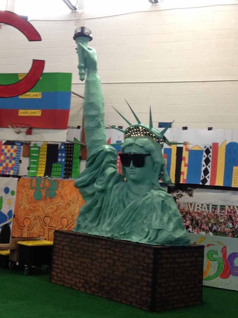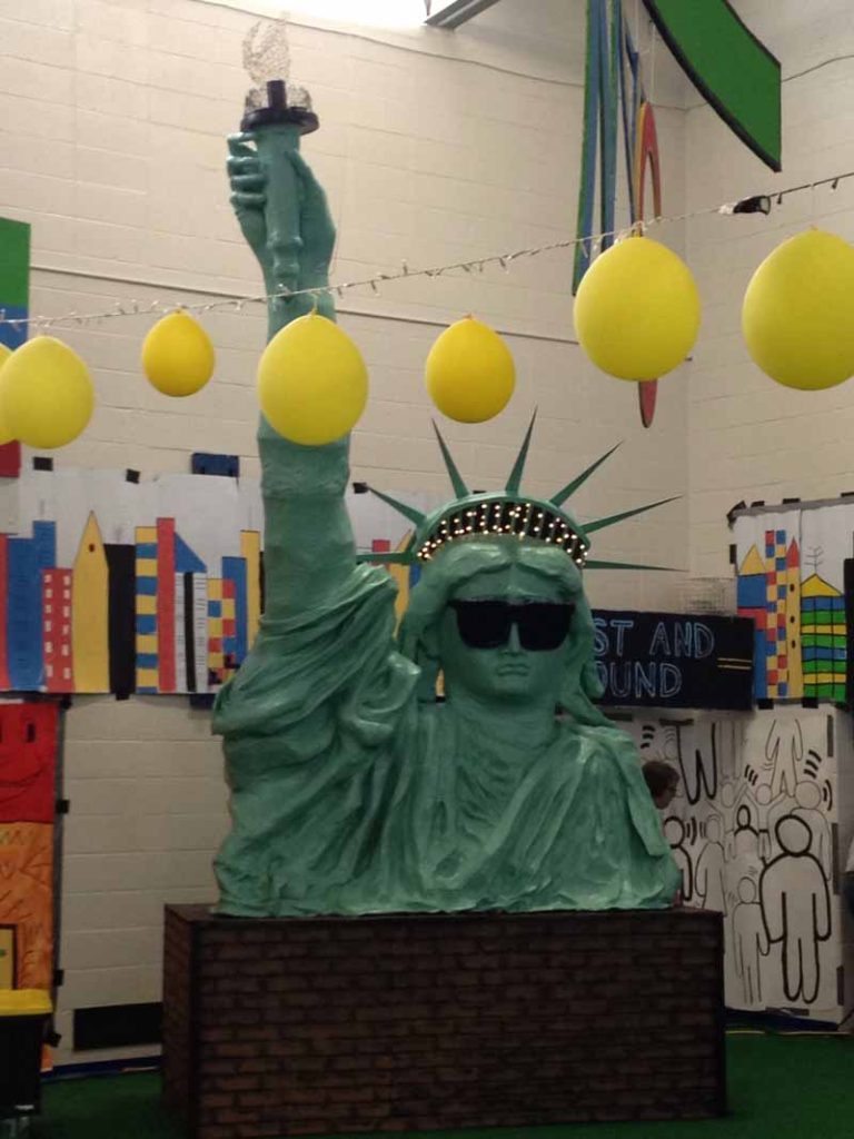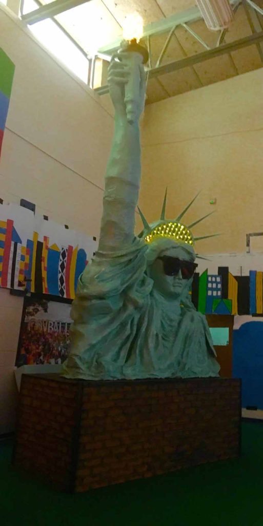 This year, to go along with the Governors Ball theme, Anchin created a Statue of Liberty that was made from thousand-foot rolls of tape from Costco and endless amounts of tin foil. Many people helped with this creation because the structure was so large. An engineer, two carpenters and a construction expert were all present to make sure that the 23-foot upright Statue of Liberty arm would be structurally sound and stable. He even used his teaching skills so the parents could help with the papier–mâché.