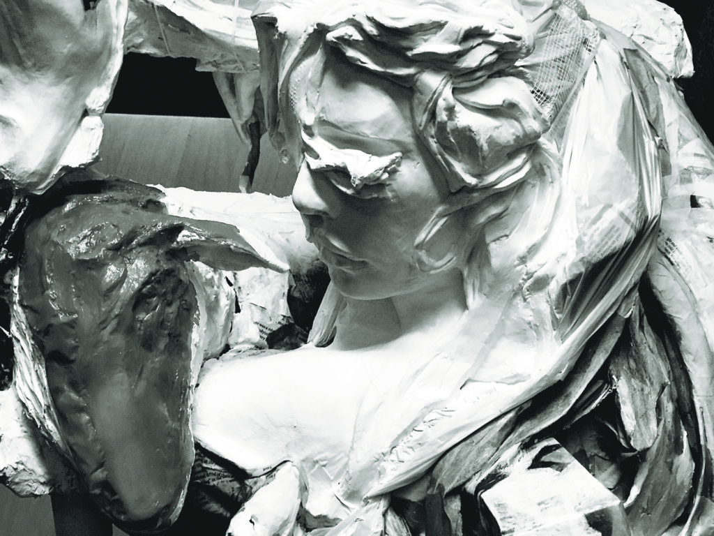 It was training that prepared her well for her first solo show, now running through the first week of March at the Lomex. Barboza’s exhibit, titled Expectation Histo-Satis, features seven life-size pieces, characters that come from a book she’s working on inspired by David Bowie.