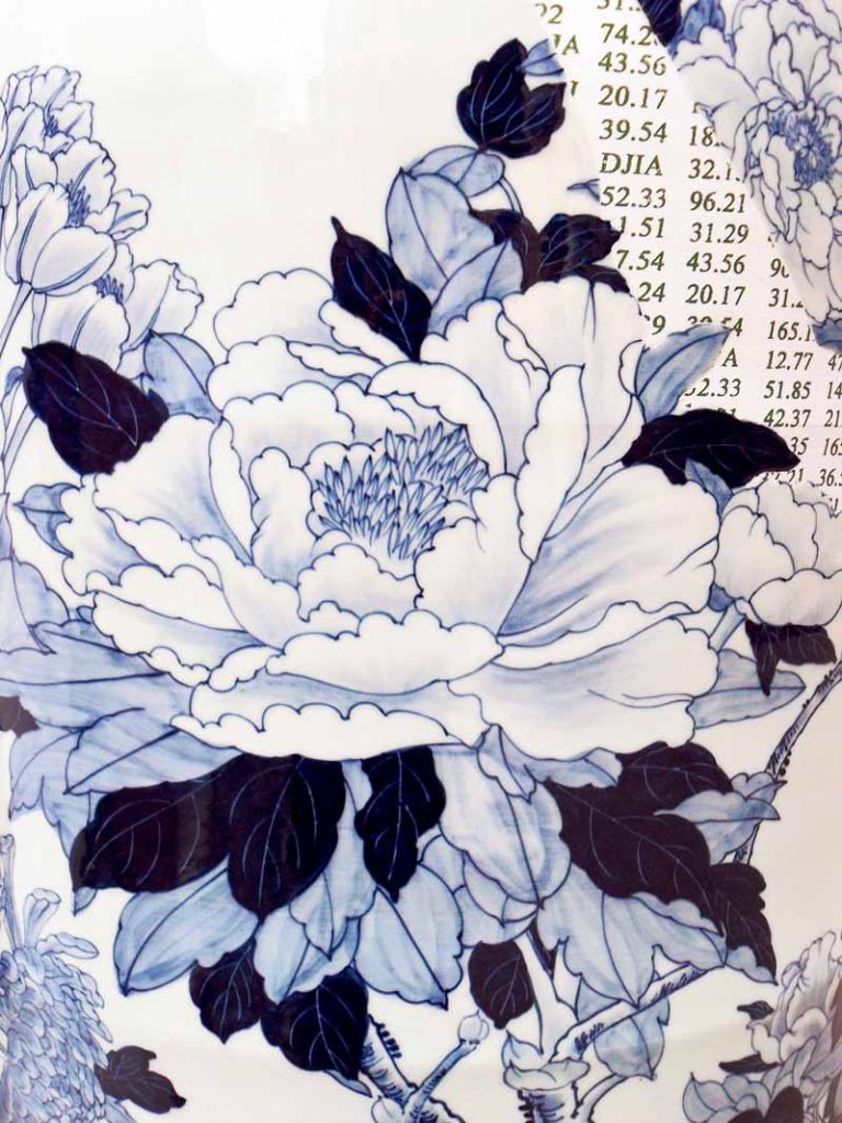 In addition to the reception, two artists will speak about cobalt and indigo in clay and fiber on Sunday, April 23, from 2 to 4 p.m. Ceramic artist Sin-Ying Ho will speak about the glories of Chinese blue and white wares and how her work explores the “collision of cultures,” where she combines traditional Asian hand-painted imagery with the use of new technologies such as computer-generated decals. Fiber artist Bernadette Puleo started her journey of exploration of the mysterious Polygonum Tinctorium, or Japanese Indigo, when she ordered some indigo seeds in 2002. She will discuss both the process of vat dyeing with indigo and how she embeds her dyed cloth in pulp to create pulp paintings and experiments with shibori techniques to make resist patterns on silk.