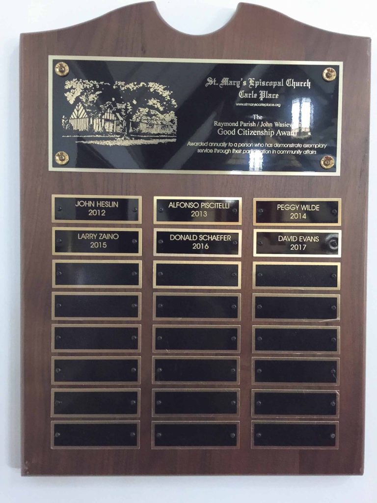 What makes a good citizen? Just ask David Evans, who was recently honored by St. Mary’s Church in Carle Place with its Raymond Parish/John Wasiewski Good Citizenship Award in recognition of his extraordinary service for the community.