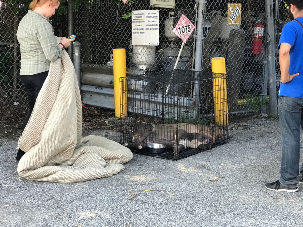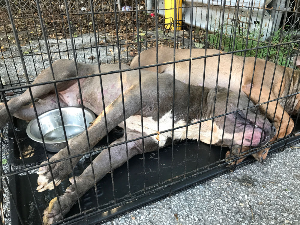 On Monday, July 31, between 4 and 5 p.m., the pit bulls were discovered dead, inside a crate behind 19 Davis Avenue in Port Washington—next door to the North Shore Animal League. One of the dogs is a gray and black male and the other is a tan colored female. They are both approximately three years old and weigh 60 to 70 pounds each.
