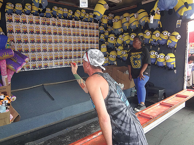 A local man tries his hand at a game of skill at one of the many forms of amusement available at the Massapequa Street Fair.