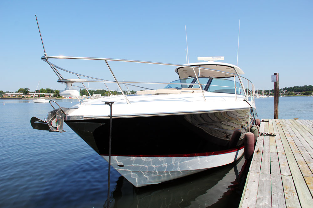 Sitting on the front deck sun pads of the Cobalt 46, one may gaze out across the bay, spying the blue sky that seems to alter color as it touches Manhasset Bay’s gentle wake, and feel a sense of serenity that only the quiet of slowly pulling out of Inspiration Wharf may bring. As the Long Island Boat Rentals charter yacht picks up speed, one might want to head to the seat situated on the bow to feel the wind in their hair or take in the views of the New York City skyline to the left and the greenery of the Port Washington coast to the right. The luxury express yacht cruiser, complete with two full cabins, a hydraulic swim platform for easy access to the water, a barbecue grill in the cockpit and surround sound stereos, is one of the five rental boats that Long Island Boat Rentals offers to get residents and tourists out on the water in Port Washington.