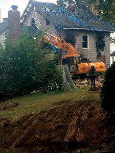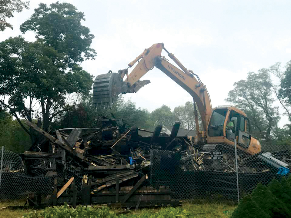 The fateful day has come, ending the agony of the landmarked Baxter House. On Monday, Oct. 9, heavy machinery completed the destruction that had occurred in the early hours of Sunday morning, Feb. 5. The fire caused extensive damage to the structure, which had been unoccupied, and sealed its fate. The Village of Baster Estate building inspector issued a demolition order in May.