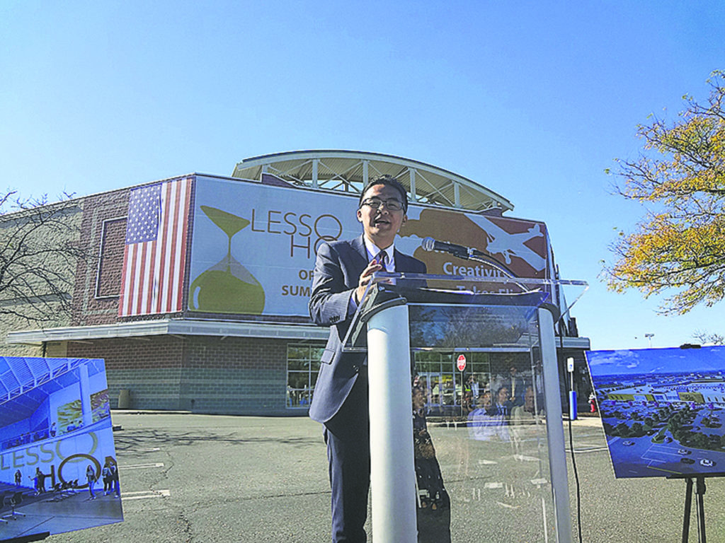 Currently considered a “dead mall” with many vacancies and little foot traffic due to the closing of several large anchor and sub-anchor stores—including high-end retailer Fortunoff—The Source was facing eventual closure and demolition when it was acquired by Lesso in 2017 for $92 million. During a presentation on Oct. 19 held before local business leaders and elected officials in the parking lot of the mall, Lesso executive Michael Mai unveiled a massive banner on the side of the building signaling a rebirth of the once beleaguered retail property.