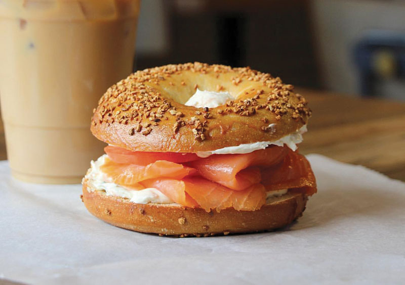 Open at 5 a.m. on weekdays and 6 a.m. on weekends, early-rising customers can order brewed and iced coffee, provided by Toby’s Estate, that can be made with specialty milk (soy or almond), plus espresso, a small tea selection and an impressive selection of syrups. Schmear’s bagels and baked goods—including chocolate cigars, raspberry sticks, cupcakes, muffins and linzer tarts—are all baked in-house. There are plenty of schmears, including walnut raisin cream cheese and apple butter. Breakfast and lunch sandwiches are served all day and can be made to order.